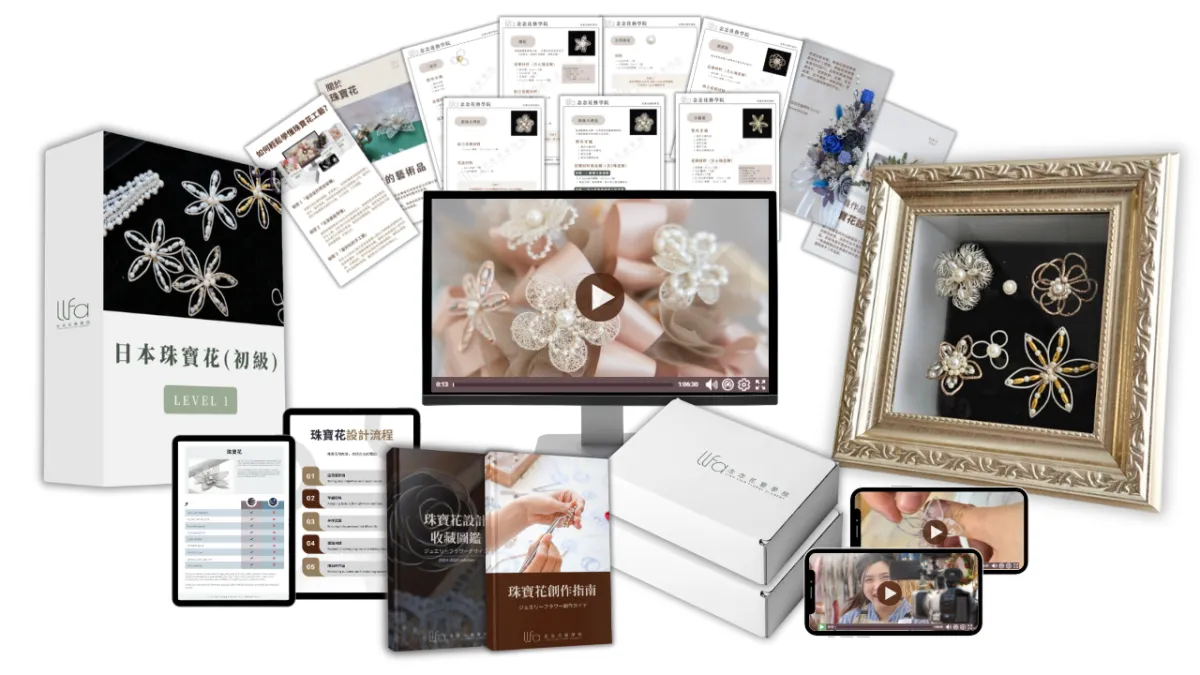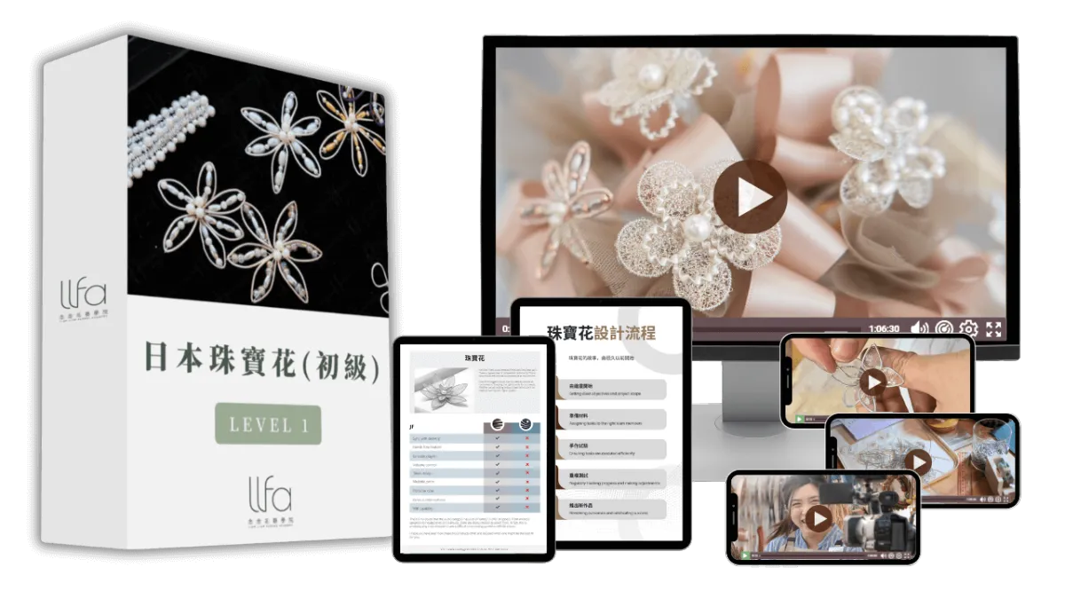 本課程共分為四個級別,將帶你從零開始,學習從入門到進階、從平面到立體(3D)的珠寶花技法,全面掌握日本的獨特珠寶工藝。