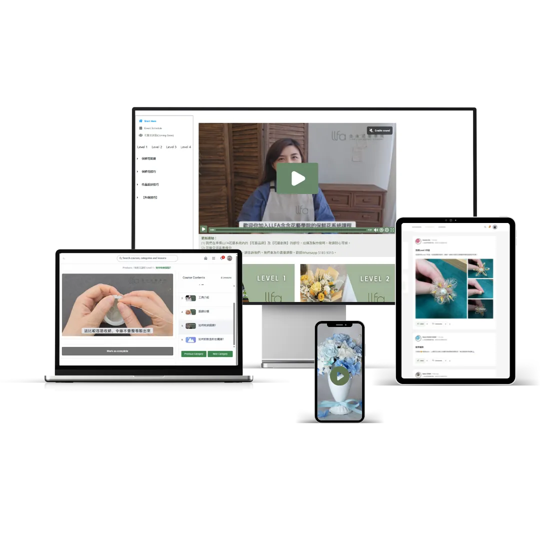 課堂會由淺入深教授每個技巧,配合線上影片重溫,即使完全無經驗的學員,也可以輕鬆掌握並完成屬於自己的花藝作品。
