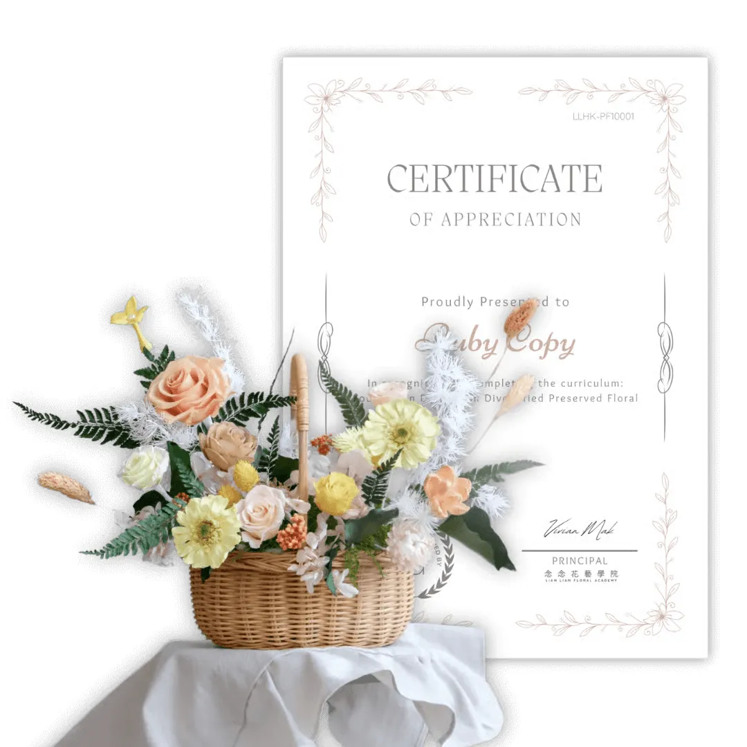 完成課程後可取得LLFA保鮮花花藝師Level 1證書。